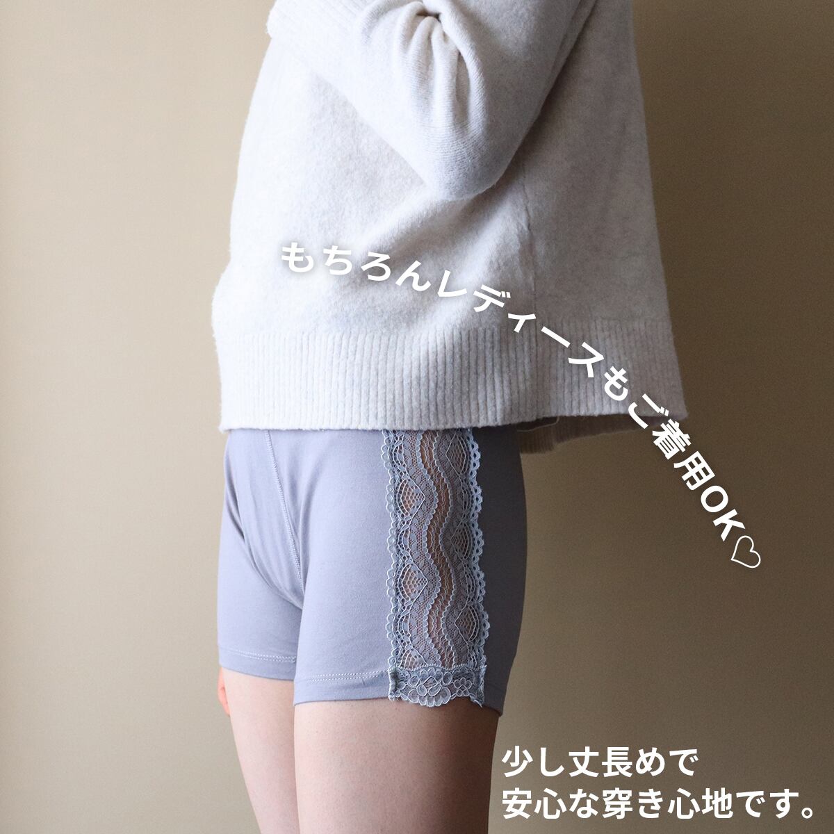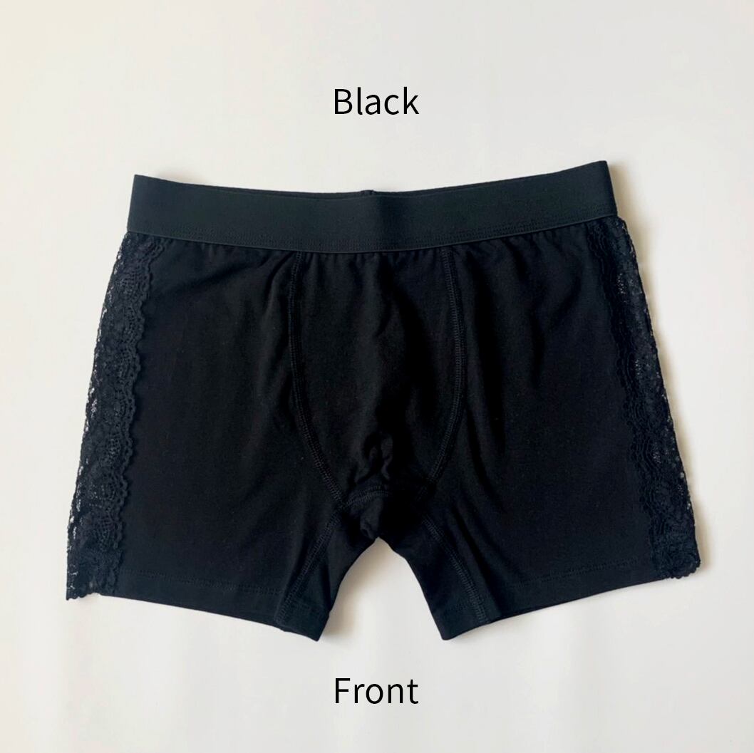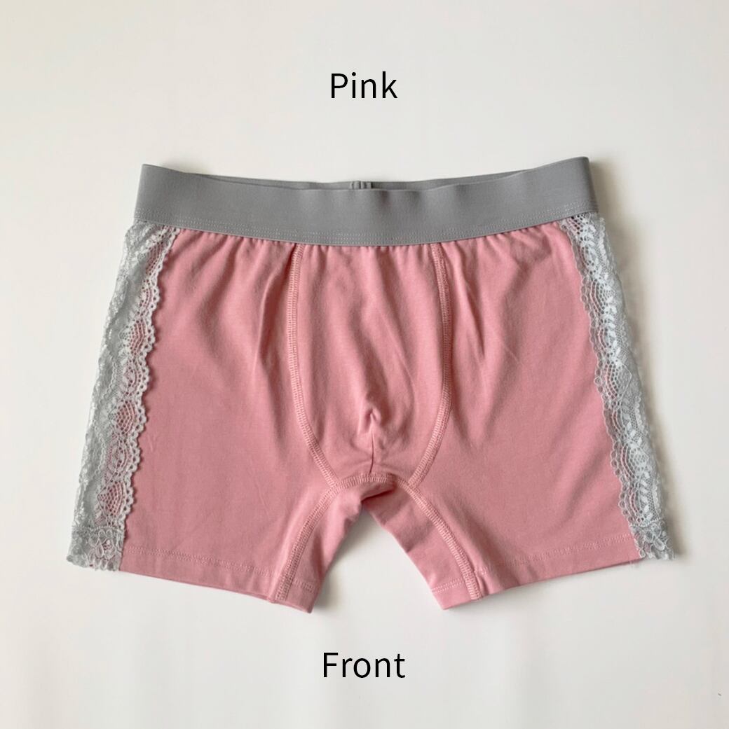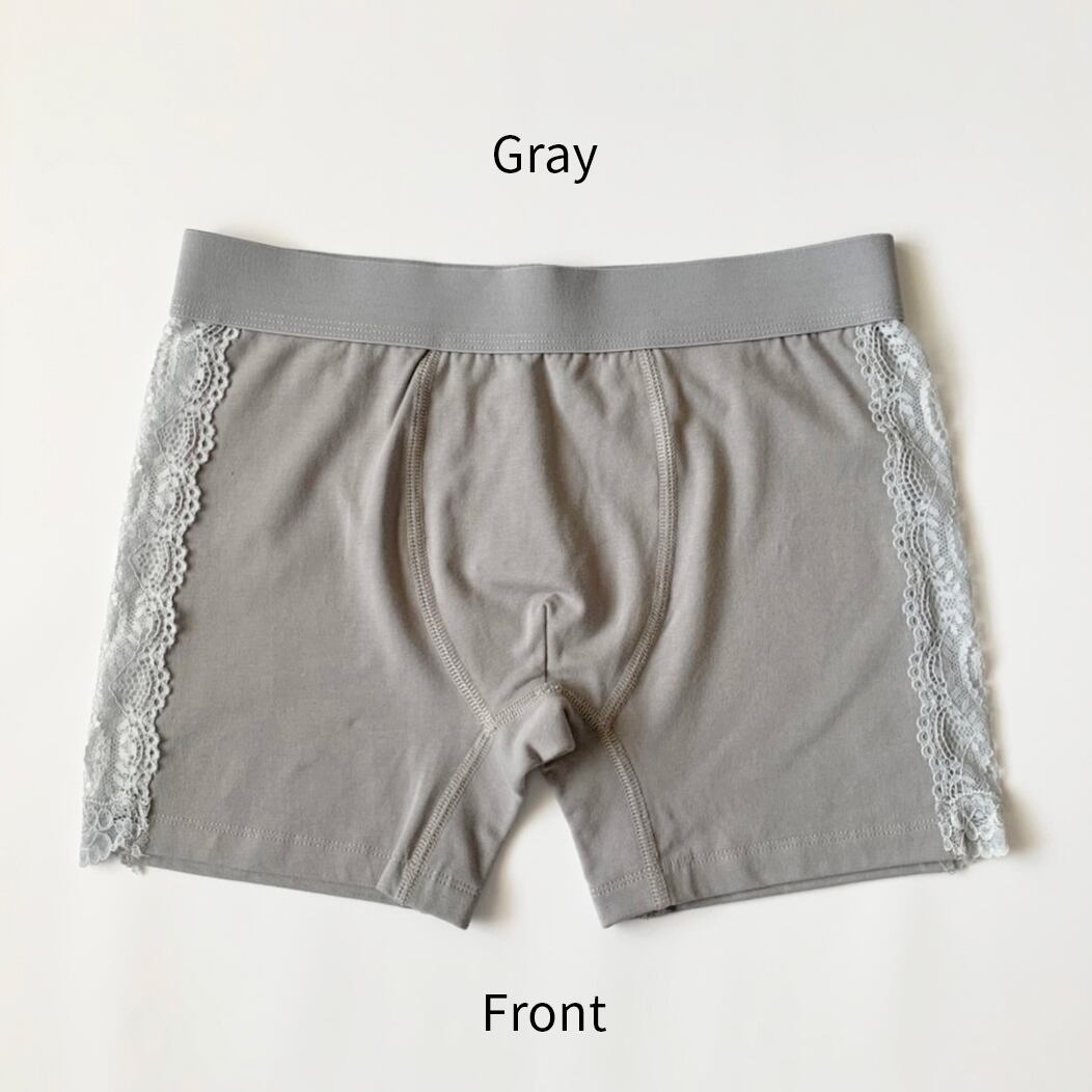 ベーシックなボクサーパンツの脇に、レースで接ぎを入れてちょっぴりセクシーに仕上げたボクサーパンツです。ボクサーパンツだけどレースから素肌が透けるフェミニンな要素をメンズでも楽しめるデザインになっています♪ 新感覚をお楽しみください。