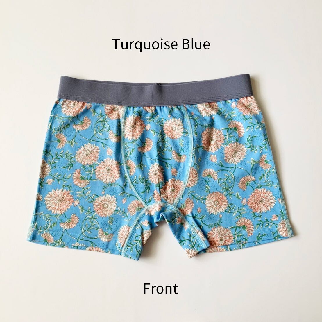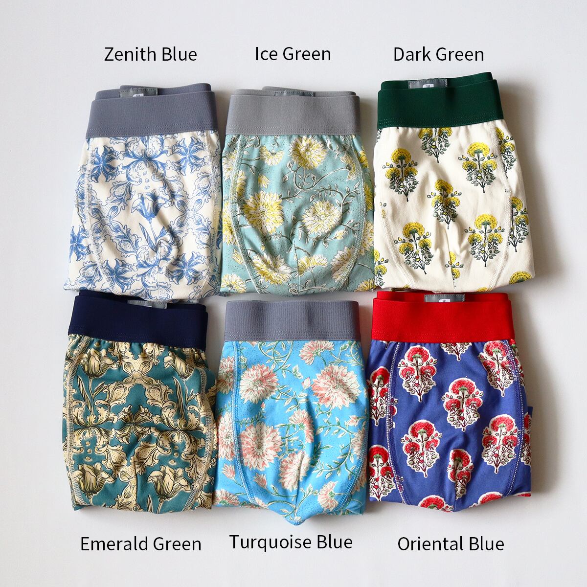 ユニセックス、オリエンタルな花柄のカラフルボクサーパンツ。